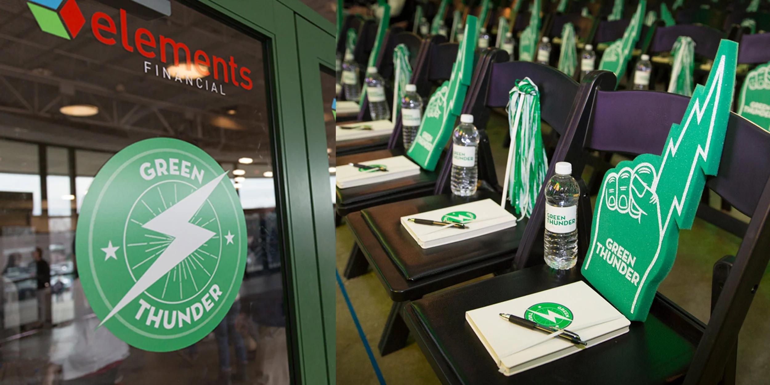 In 2016 Angie's List held its first company wide event for employees to announce new products and directions for the company. We worked with the Internal Communications Department to come up with a design for the "Green Thunder" theme. We needed a logo that could be used on small items like pens and notebooks and also work on large areas like banners and floor projections.
