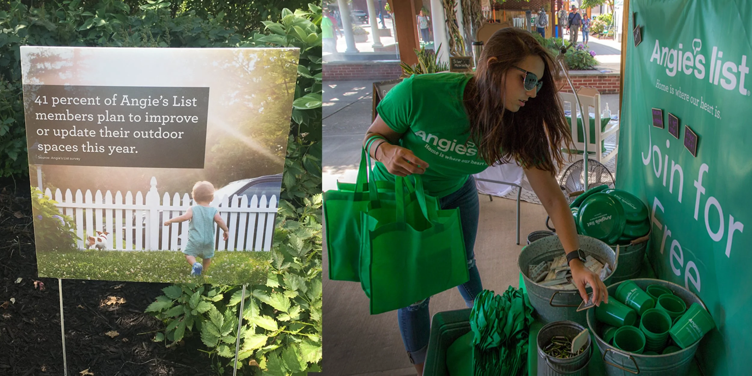 Angies List has had a presence at the Indiana State Fair for many years with the booth located in the permanent "Angie's List Garden". In 2017 the events team asked for some ideas for the 2017 booth and signage, taking our new branding into consideration and wanting the booth to have a "homey barn" feel. My team helped with branding, banner and poster design for the event. We ended up adding a black board for members to write on and also a fun photo booth for kids with little green helmets they could take with them.