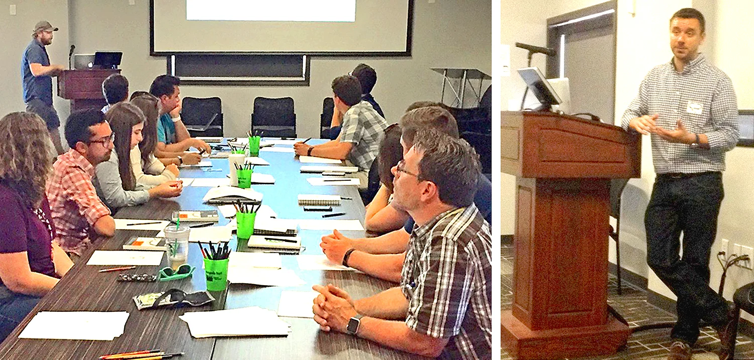 I believe that mentoring staff and fellow designers is important in my role as design leader, and I am always looking for ways to inspire and guide my teams. To promote inspiration and growth for designers at Angie's List, I organized a monthly guest lecture series for designers and creatives working at the List called Design Lab The Design Lab featured speakers from different backgrounds like Phillip Lynam (top right) from the Indianapolis Museum of Modern Art as well as members of my own team like Jake Lee (above left) that held a fun drawing jam, reminding everybody of the importance of drawing and sketching.